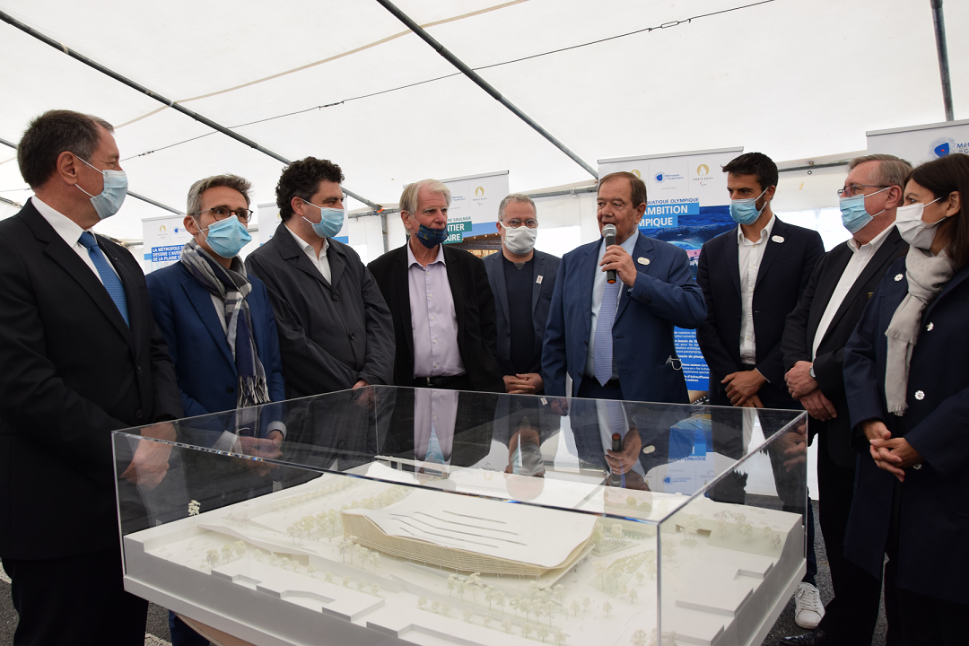 La visite de chantier a été conduite par Patrick OLLIER, Président de la Métropole du Grand Paris, accompagné de Laurent RIVOIRE, Vice-Président délégué aux Sports, en présence d’Anne HIDALGO, Présidente de la SOLIDEO ; de Tony ESTANGUET, Président de Paris 2024 ; de Laurent RUSSIER, Maire de Saint-Denis ; de Patrick BRAOUEZEC, Président de Plaine commune ; de Vincent ROGER, Délégué spécial de la Région aux Jeux olympiques et paralympiques ; de Stéphane TROUSSEL, Président du Conseil départemental de la Seine-Saint-Denis ; d’Emmanuel GREGOIRE, Premier maire-adjoint de la ville de Paris ; de Luc ALLAIRE, Adjoint au Délégué interministériel pour les Jeux olympiques et paralympiques 2024 ; de Jean-Jacques BEURRIER, Président délégué de la Fédération française de natation ainsi que Bernard MOUNIER, Directeur général délégué de Bouygues Construction.